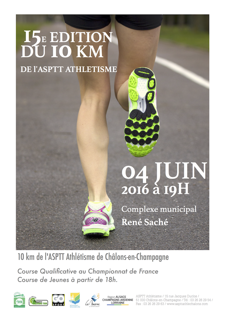 Le 10KM de CHÂLONS EN CHAMPAGNE est l'une des dernières courses sur cette distance de la saison. Le parcours est composé de deux boucles dans les rues de la ville en passant par la piste d'athlétisme en cendrée. Ce n'est pas le plus beau des parcours mais il a le gros avantage d'être sans aucune difficulté si ce n'est, habituellement à cette période, la chaleur du mois de juin… Par chance, cette année, c'est la pluie (à l'échauffement) et la relative douceur (17°C) qui a accompagné les presque 350 coureurs tout au long de l'épreuve.