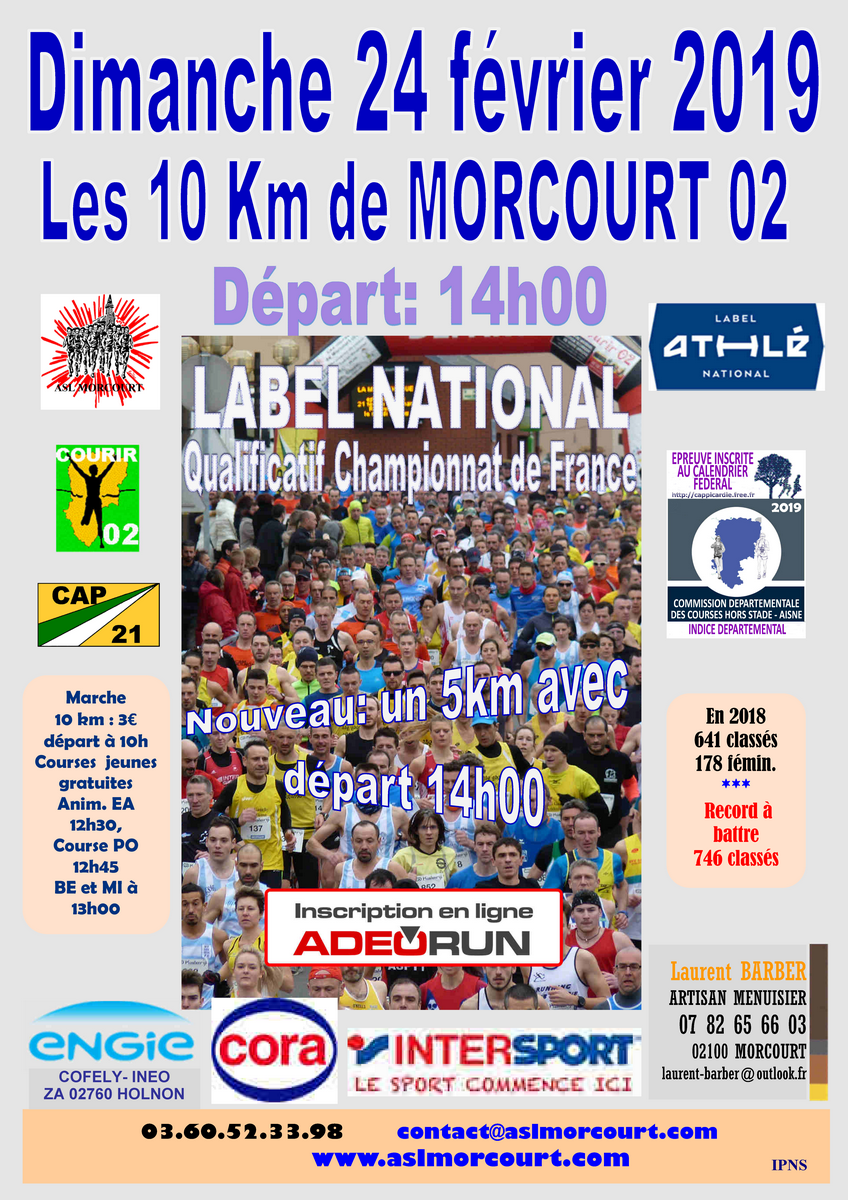 Enfin… Les amoureux du bitume revivent! Première compétition sur route de l’année, le 10KM de MORCOURT organisée par l’ASL MORCOURT (Association Sports et Loisirs de MORCOURT), CAP21 et COURIR02) est idéalement placée juste après la préparation hivernale. Elle attire, chaque année, de nombreux coureurs souhaitant évaluer leur état de forme et mesurer les progrès réalisés après les derniers mois d’entraînement.