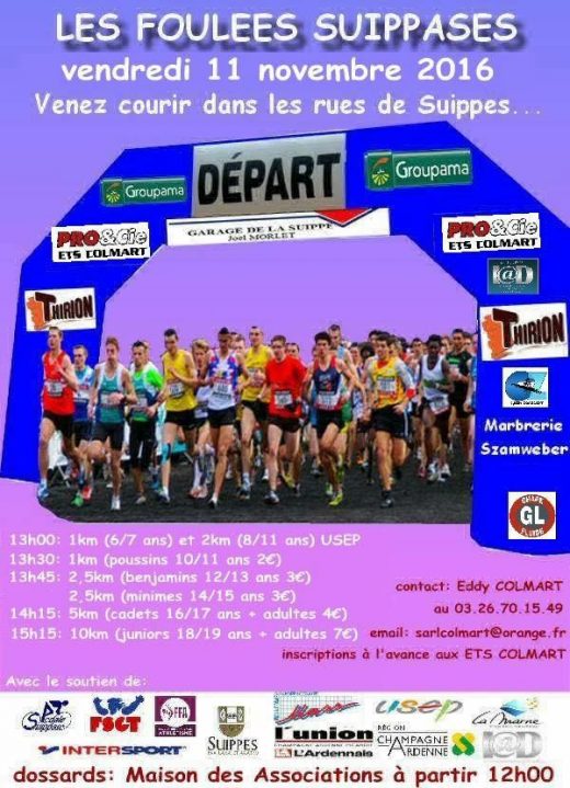 Vendredi 11 novembre ont eu lieu les Foulées SUIPPASES, une course de 10KM (4 boucles de 2,5KM) dans les rues de SUIPPES. Un rendez-vous "girly" pour trois coureuses de l'association: Jennifer DELLOUX, Sandrine BLONDEL...