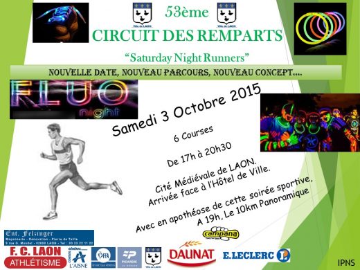 Pour cette 53ième édition du circuit des remparts, le FC LAON Athlétisme innove avec un nouveau concept, le "Saturday Night Running". Toujours un circuit de 10KM dans les rues et sur les remparts de...