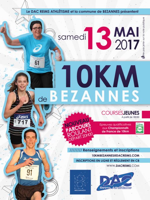 Samedi 13 mai ont eu lieu les 10KM de BEZANNES. Pour cette nouvelle édition, un nouveau parcours avait été dessiné dans les rues de cette ville s'étendant un peu plus chaque année. Un parcours...