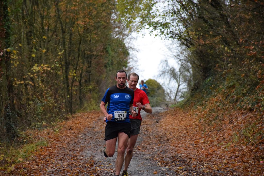 Deux parcours étaient proposés: un cross long de 8KM (4 boucles) et un cross court moitié moins long (2 boucles). Un circuit bien connu de la plupart de nos coureurs qui avaient déjà participé à l’édition précédente de cette course: un départ (et une arrivée) devant l’ancienne gare sur un chemin de « terre-grève » détrempé et un peu « troué », un passage d’une centaine de mètres sur le bitume avant d’entamer une longue montée sur terrain herbeux et enfin un retour vers l’arrivée sur une longue descente sur chemin de caillou. Pour finir, 300M le long de la voie de chemin de fer, sur un chemin très, très humide où les (énormes) flaques d’eau ont élu domicile.