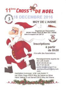 Les filles avaient une distance d'un peu plus de 5KM à courir, tandis que David courait le cross long de 7,5KM. Pas de difficulté particulière sur le parcours très plat qui s'effectuait sur le stade et autour de l'étang de la commune de MOY DE L'AISNE, en plusieurs boucles. Originalité de ces courses, hormis la présence du Père Noël venu encourager, un peu en avance, les coureurs, elles démarraient toutes à la même heure.
