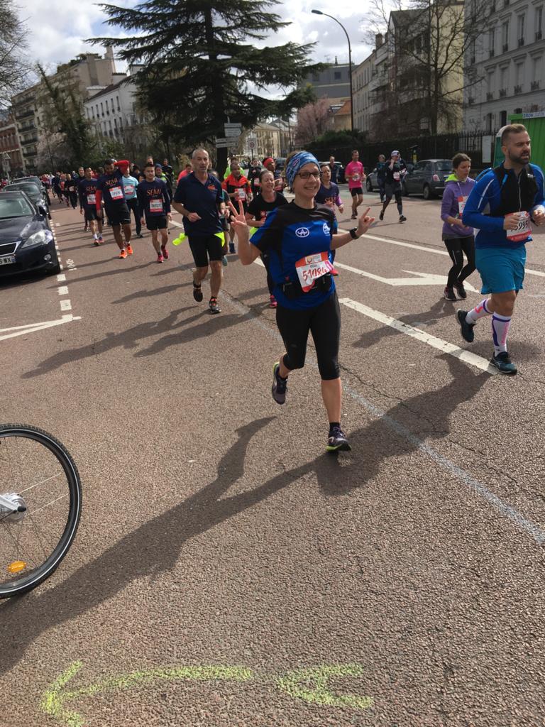 Nous traversons le bois de VINCENNES depuis quelques kilomètres, et ça devient un peu long. Moins d’ambiance, moins de monde, et donc moins d’encouragements à aller au bout. Mais j’y crois, et je suis contente et satisfaite de me sentir bien, sans douleur, sans ce sentiment de « Je n’en peux plus »!