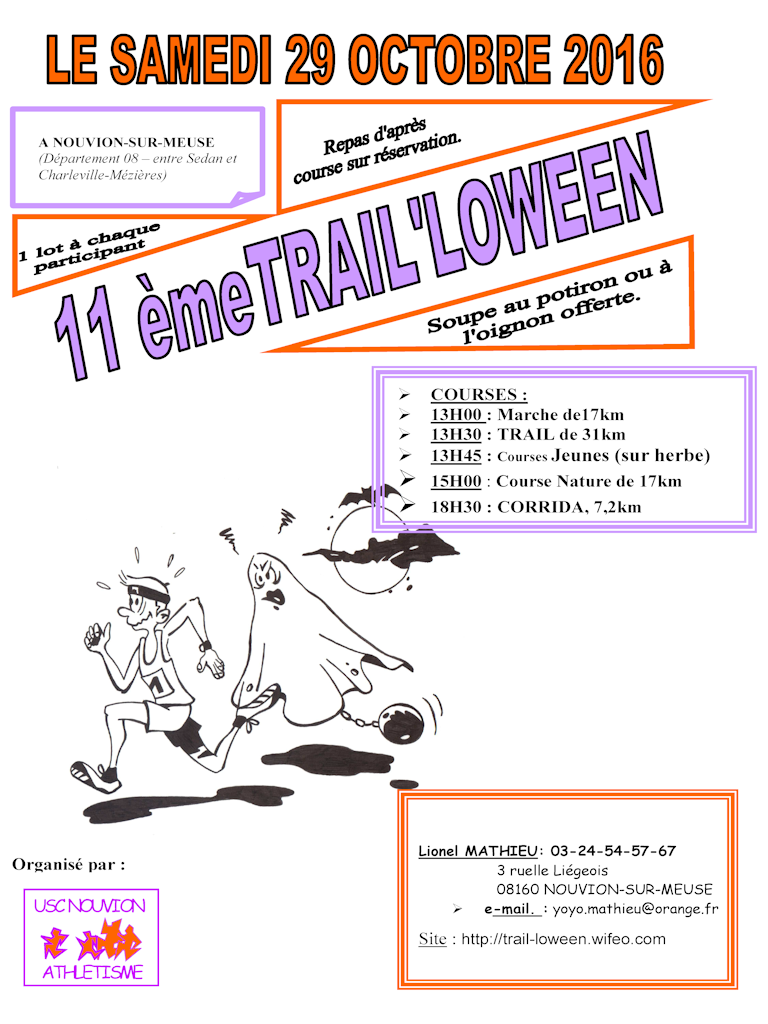 Samedi 29 octobre 2016, le traileur du FOOTING LOISIR GUIGNICOURTOIS, Alain BLITEK était forcément présent au départ de la 11ième édition du TRAIL'LOWEEN de NOUVION SUR MEUSE.